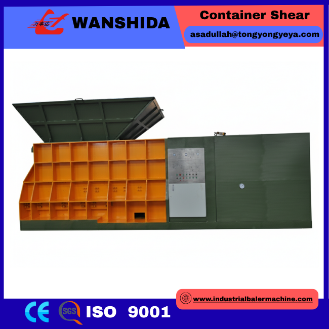 এই ওয়ানশিদা Q43W-6300 অনুভূমিক কন্টেইনার শিয়ার একটি উচ্চ-ক্ষমতার হাইড্রোলিক স্ক্র্যাপ মেটাল শিয়ার মেশিন যা ভারী স্ক্র্যাপ স্টিল, শিল্প বর্জ্য এবং বৃহৎ আকারের উপকরণ প্রক্রিয়াকরণের জন্য তৈরি করা হয়েছে। একটি 6300kN (630 টন) কাটিং ফোর্স এবং একটি শক্তিশালী 147kW মোটর সহ ডিজাইন করা এই ভারী শিয়ার প্রতি ঘন্টায় 9–11 টন